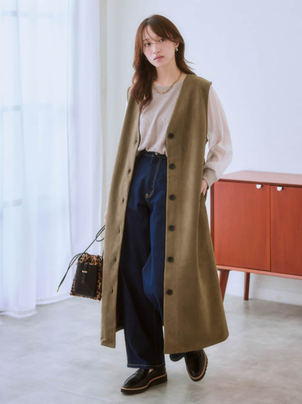 nissen Ladies Models(nissen本店models)のジャンパースカート「3WAYスエード調ジャンパースカート」を使ったコーディネート
