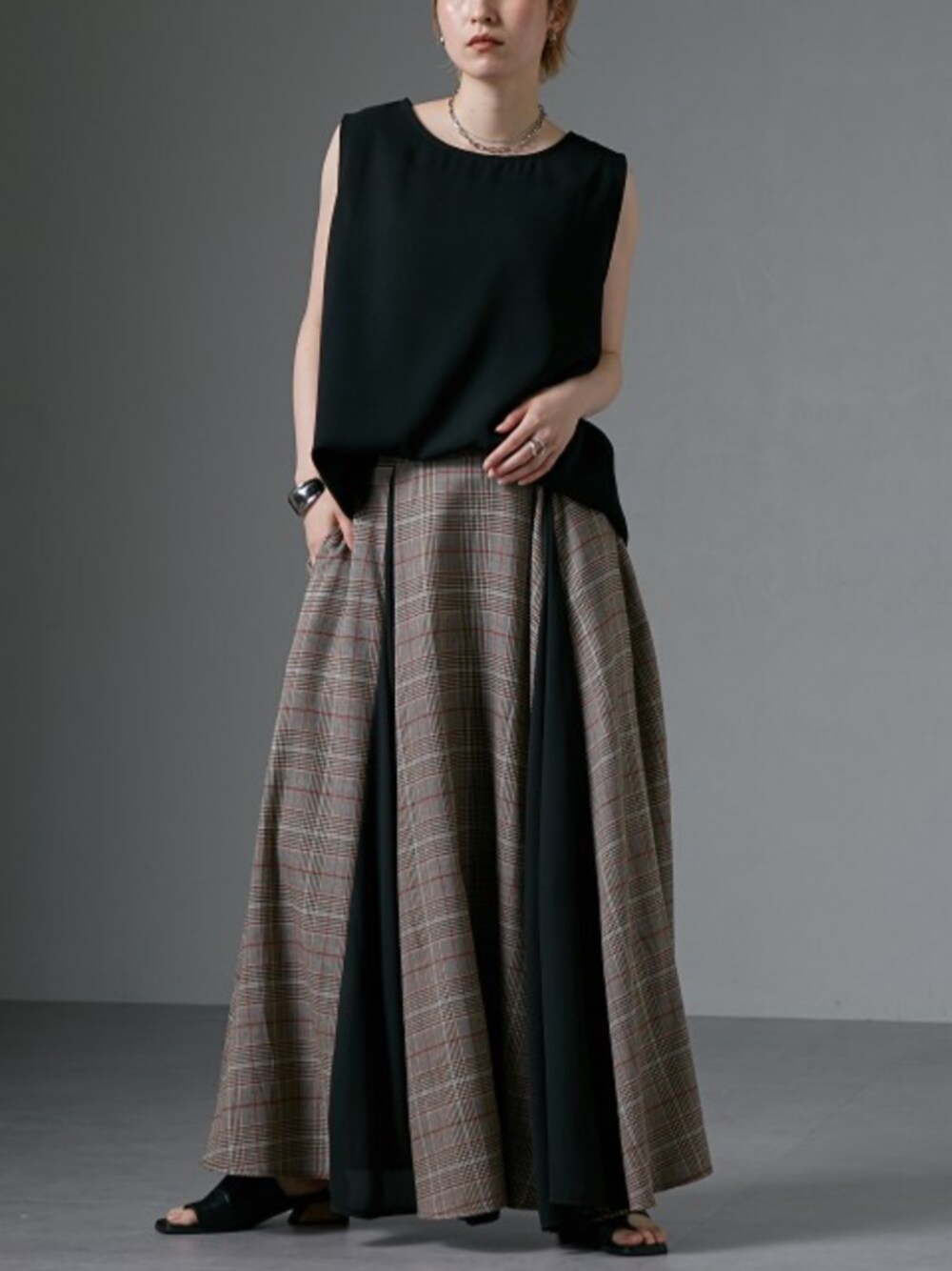 nissen Ladies Models(nissen本店models)のキャミソール「ジョーゼット素材ゆるっとタンクトップ [Soiunique]」を使ったコーディネート