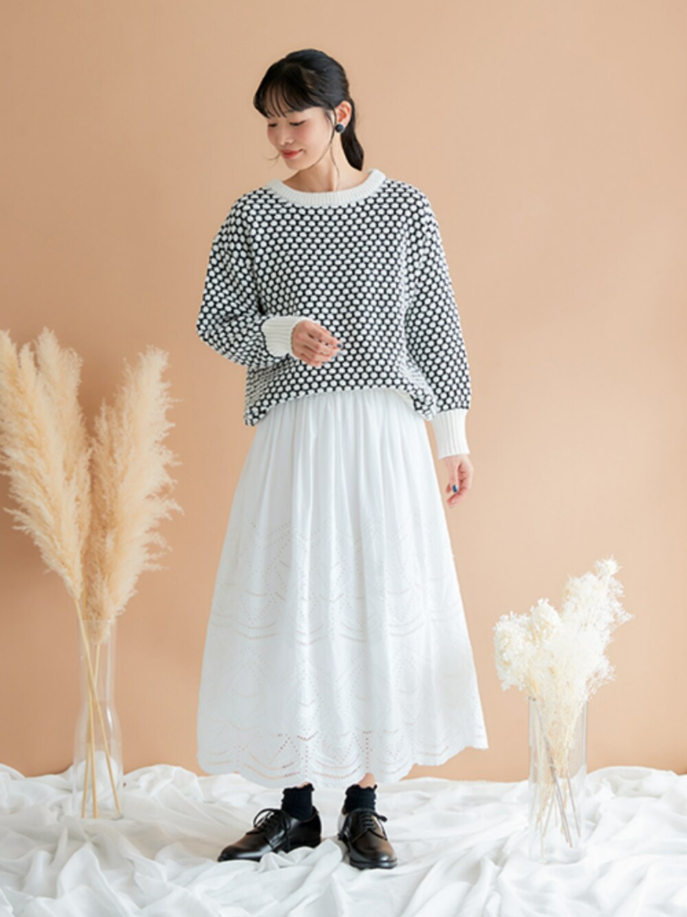 nissen Ladies Models(nissen本店models)のニット/セーター「ぽこぽこ配色ジャガードオーバーサイズニット<大きいサイズ有>」を使ったコーディネート