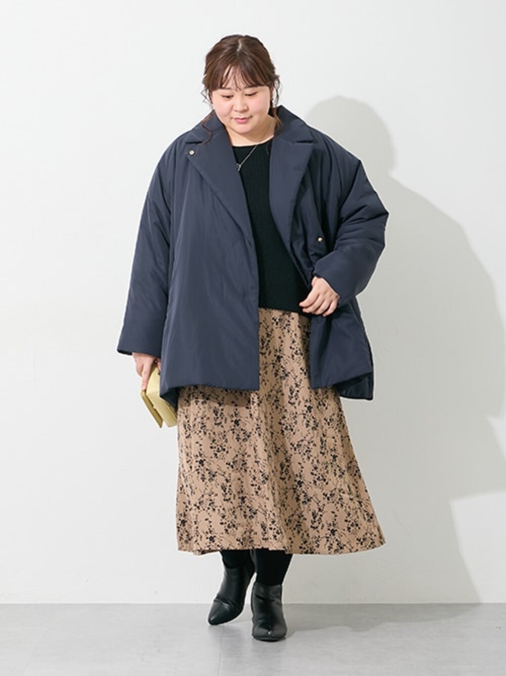 nissen Ladies Models(nissen本店models)のダウンジャケット/コート「<大きいサイズ>ミディアム丈中わたモンスターコート」を使ったコーディネート