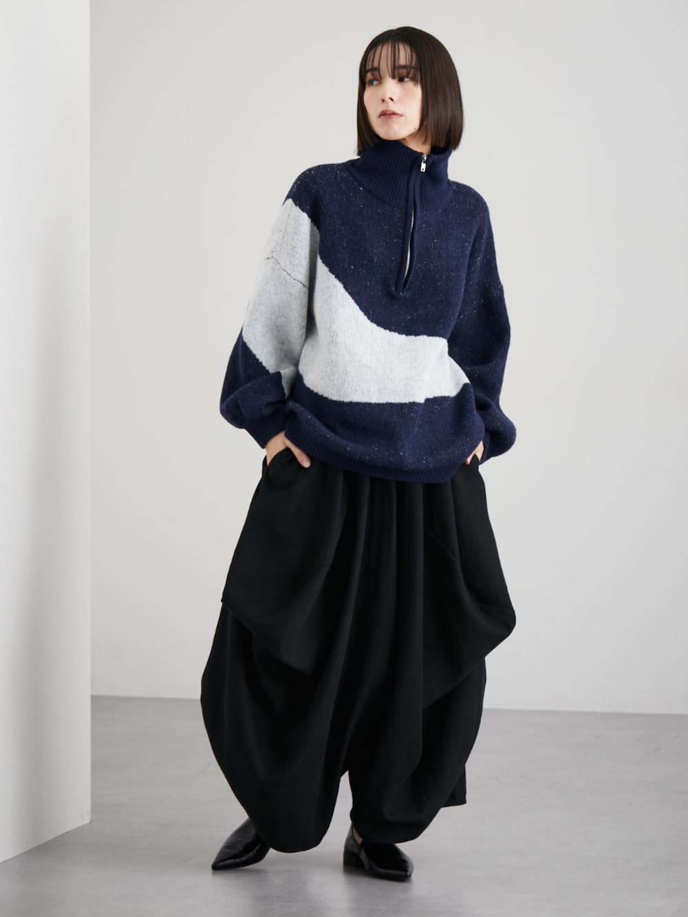 nissen Ladies Models(nissen本店models)のニット/セーター「ハーフジップアップ配色ニュアンスデザインニットトップス [Soiunique]」を使ったコーディネート