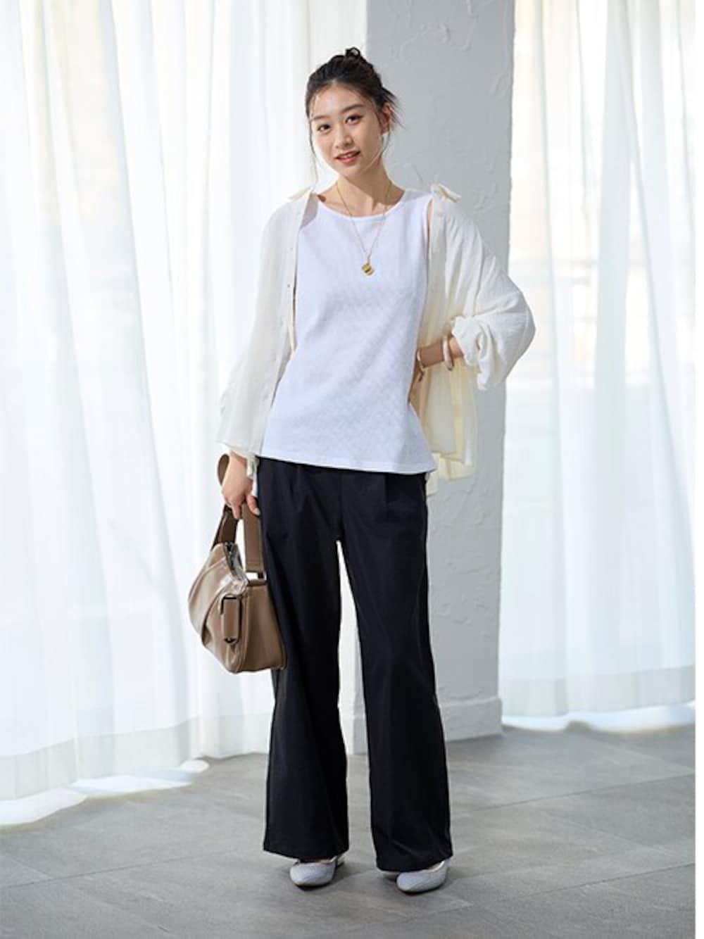 nissen Ladies Models(nissen本店models)のシャツ/ブラウス「袖丈が変えられるウエストタックシャツ」を使ったコーディネート