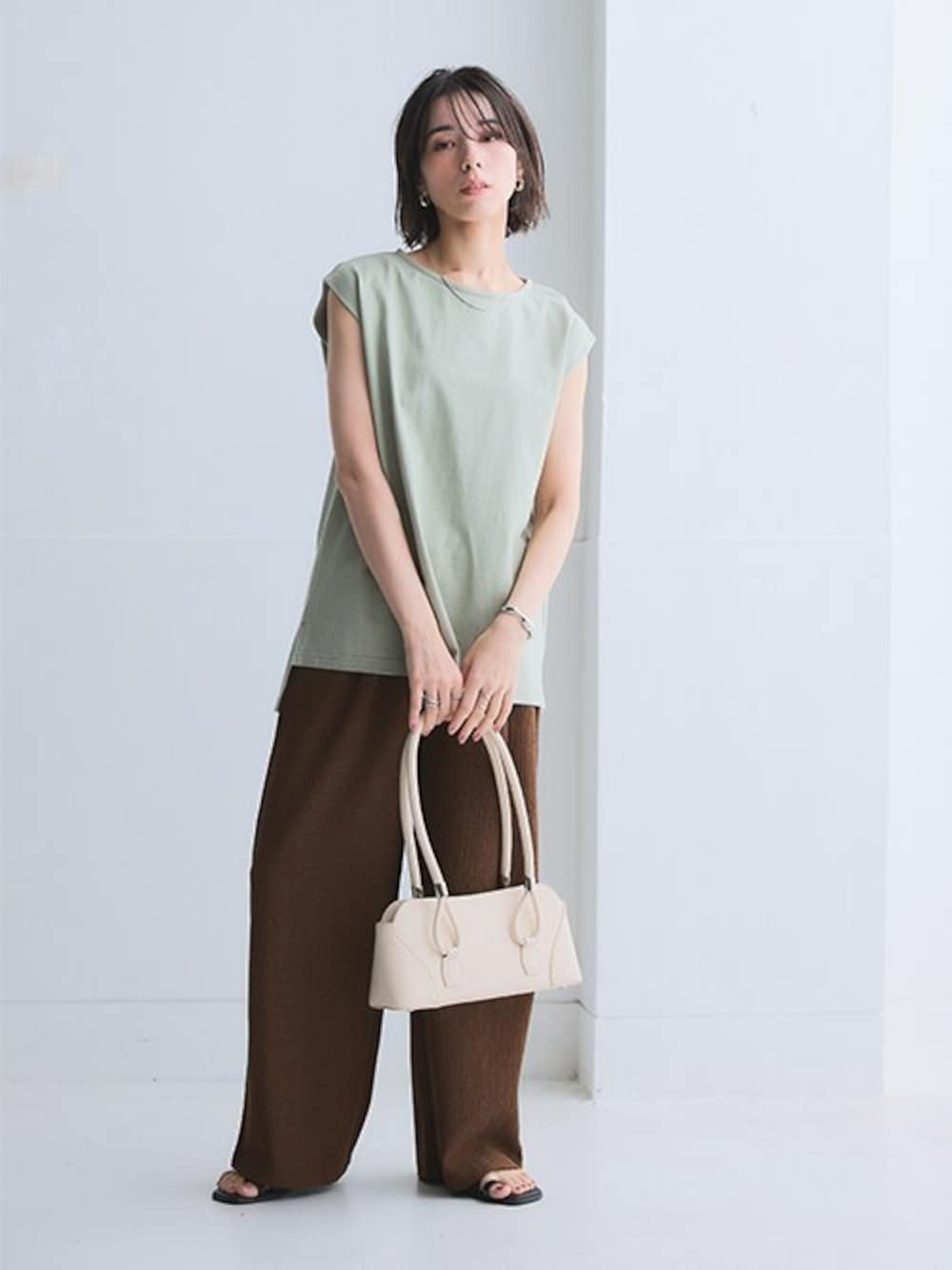 nissen Ladies Models(nissen本店models)のTシャツ/カットソー「綿100%バスクノースリーブロング丈プルオーバー<大きいサイズ有>」を使ったコーディネート