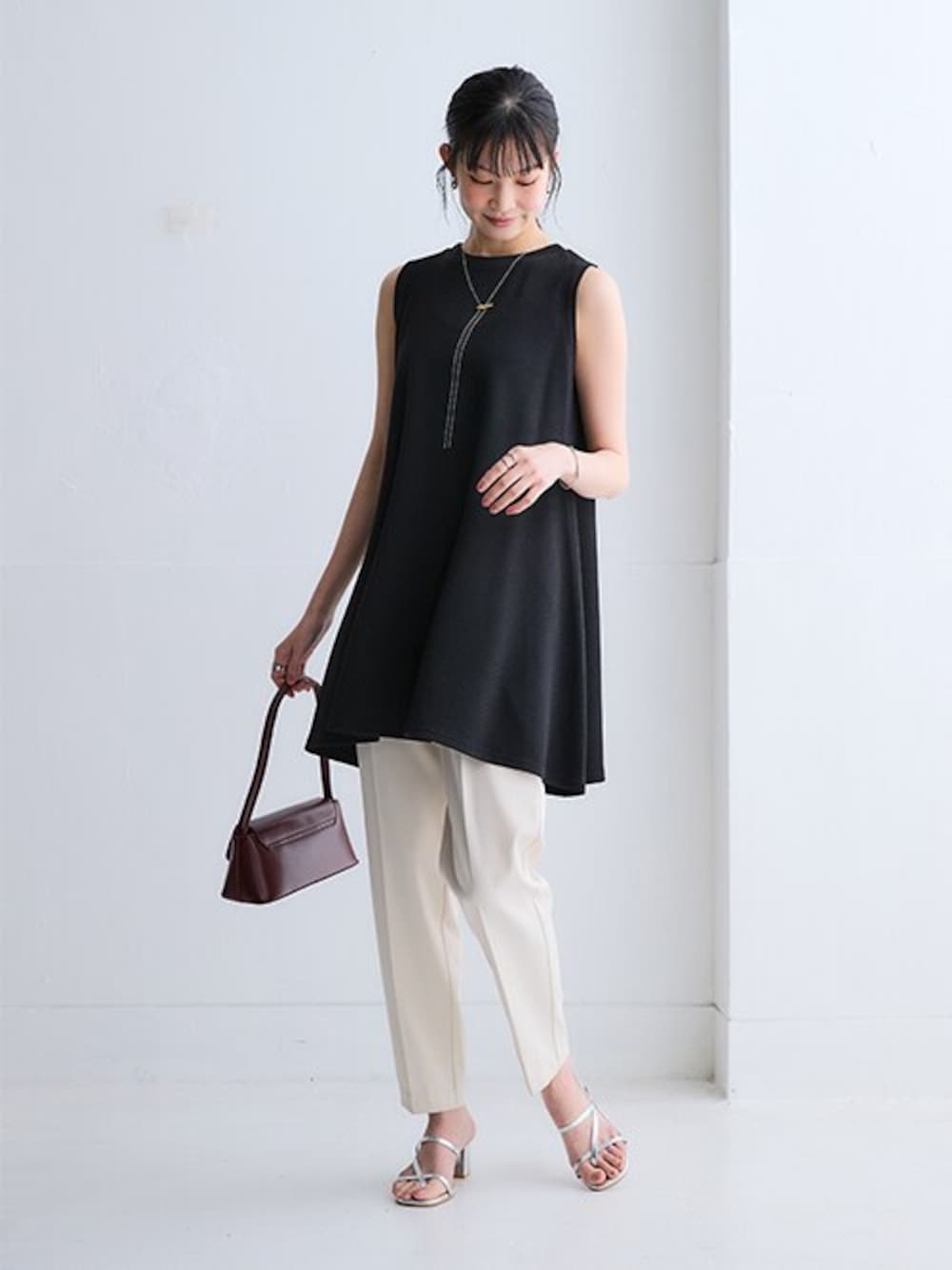 nissen Ladies Models(nissen本店models)のスラックス「【褒められシルエット】テーパードパンツ」を使ったコーディネート