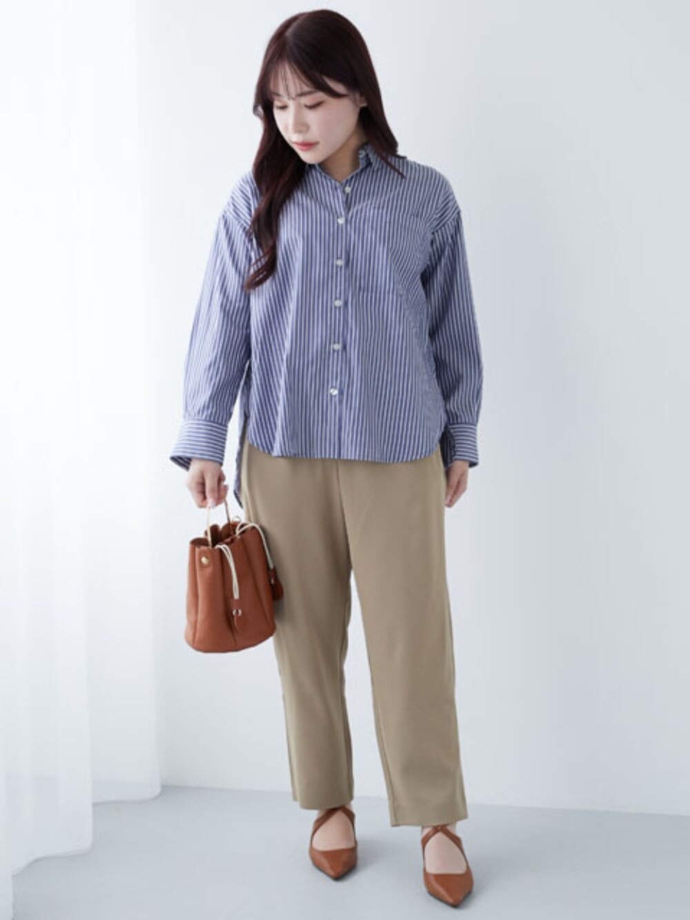 nissen Petit Models(nissen本店models)のシャツ/ブラウス「小さいサイズ さらっと羽織れるロングシャツ 低身長さん・小柄女性」を使ったコーディネート