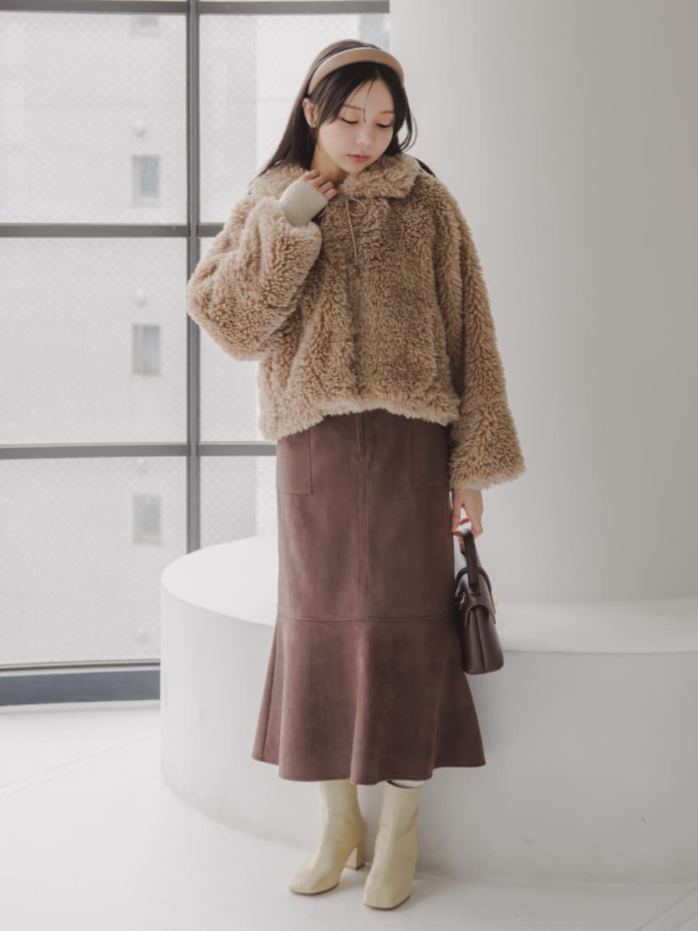nissen Petit Models(nissen本店models)のスカート「小さいサイズ パッチポケットスエード調スカート 低身長さん・小柄女性」を使ったコーディネート