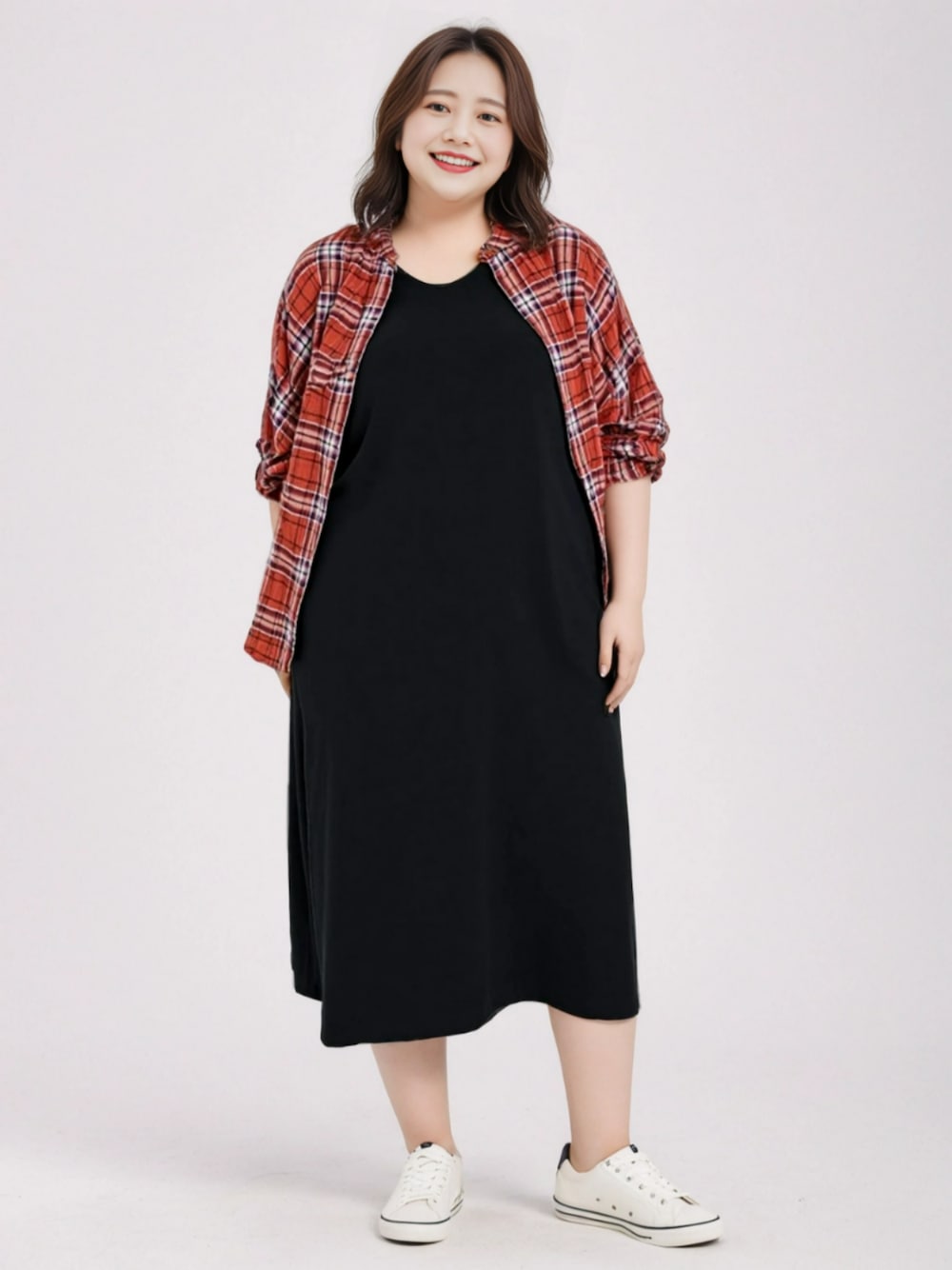nissen AI Models(nissen本店models)のワンピース「吸汗速乾・UVカットカノコすっきりVネックワンピース<大きいサイズ有>」を使ったコーディネート