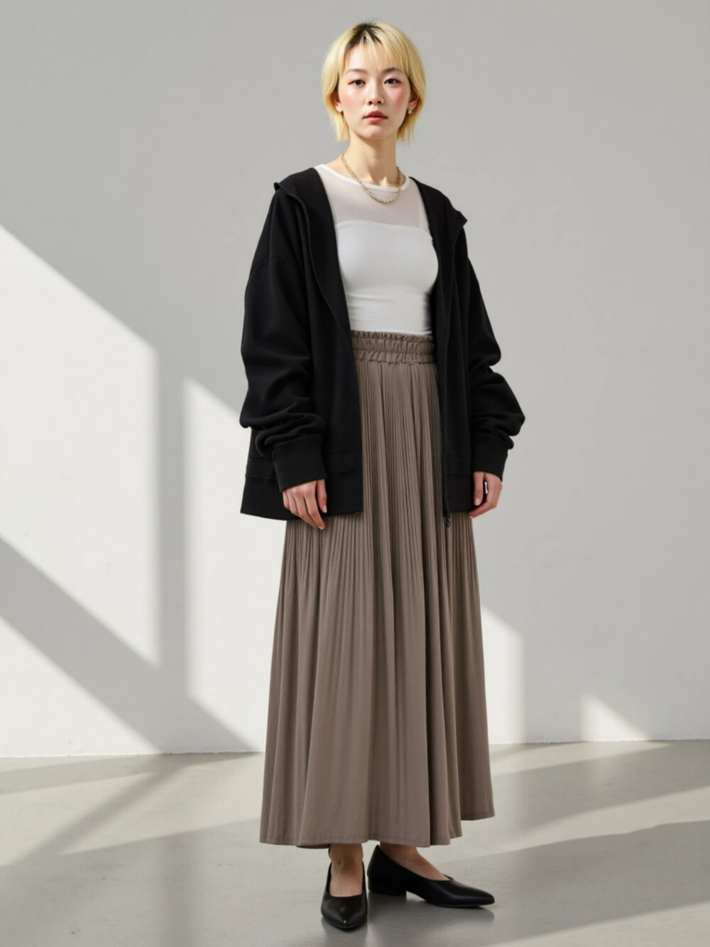 ※AIモデルを用いた着用イメージです。レギュラーサイズによるスタイリング例としてご参照ください。 実際の商品とはサイズ感・仕様が異なる場合がございますので、詳細は商品ページをご確認ください。