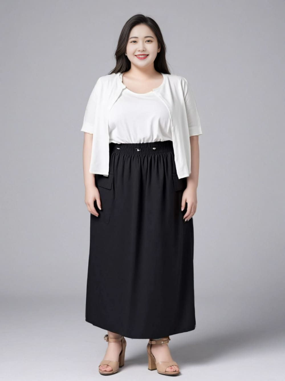 Ririka_casual_chic / リリカの軽やかオトナ服 ※AIモデルを用いた着用イメージです。ラージサイズによるスタイリング例としてご参照ください。 実際の商品とはサイズ感・仕様が異なる場合がございますので、詳細は商品ページをご確認ください。