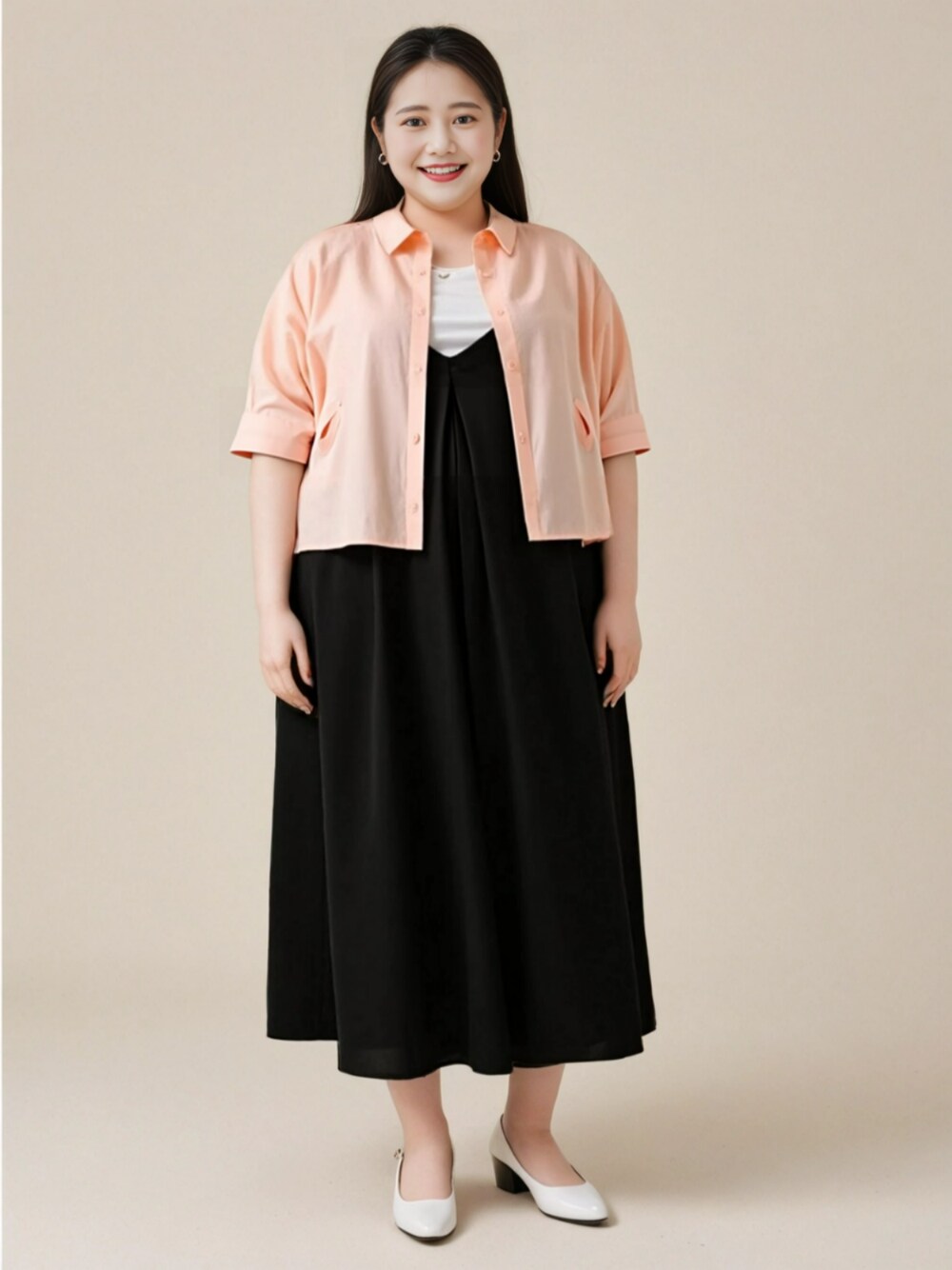 nissen AI Models(nissen本店models)のワンピース「<大きいサイズ> ロングキャミワンピース」を使ったコーディネート