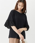 nissen AI Models(nissen本店models)のTシャツ/カットソー「フリル袖異素材使いトップス<大きいサイズ有>」を使ったコーディネート