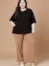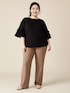 nissen AI Models(nissen本店models)のTシャツ/カットソー「フリル袖異素材使いトップス<大きいサイズ有>」を使ったコーディネート