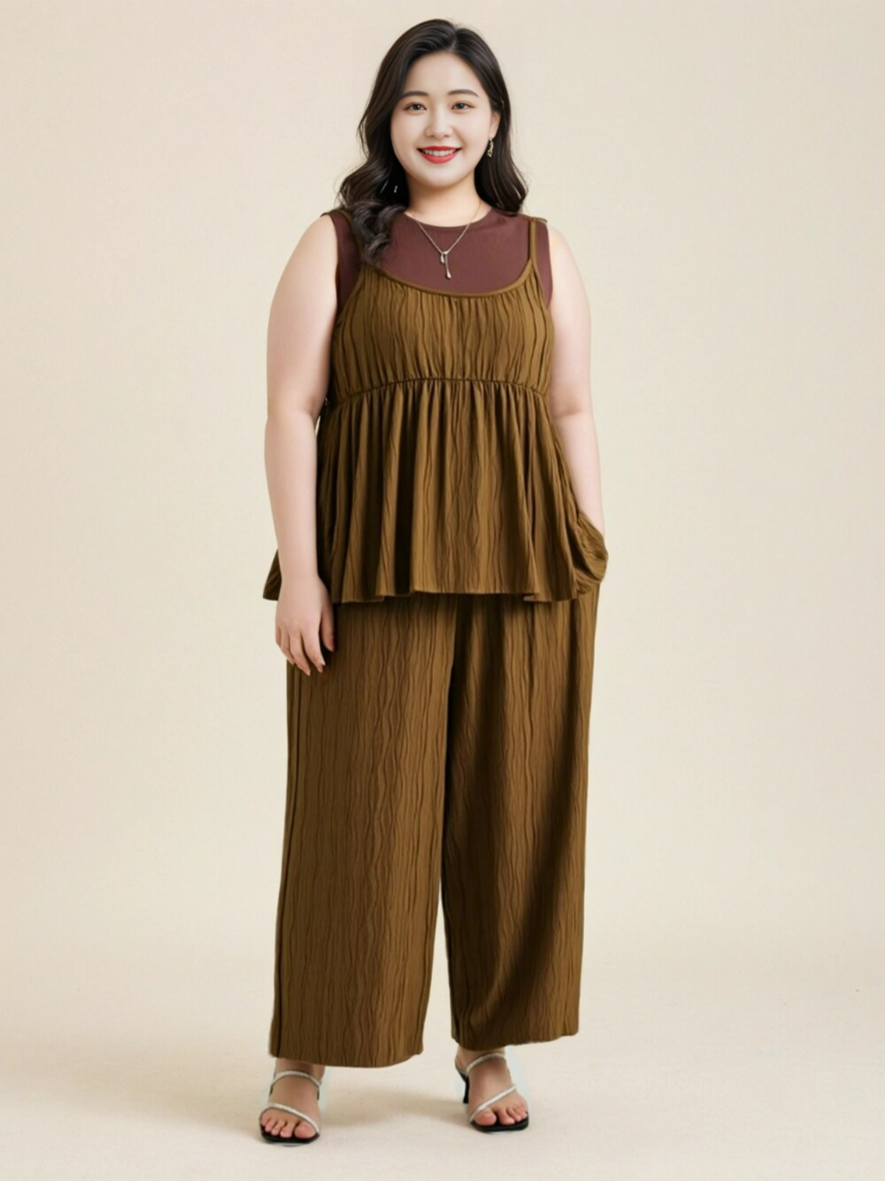 nissen AI Models(nissen本店models)のキャミソール「ランダムリブハイネックタンクトップ(薄手素材)<大きいサイズ有>」を使ったコーディネート