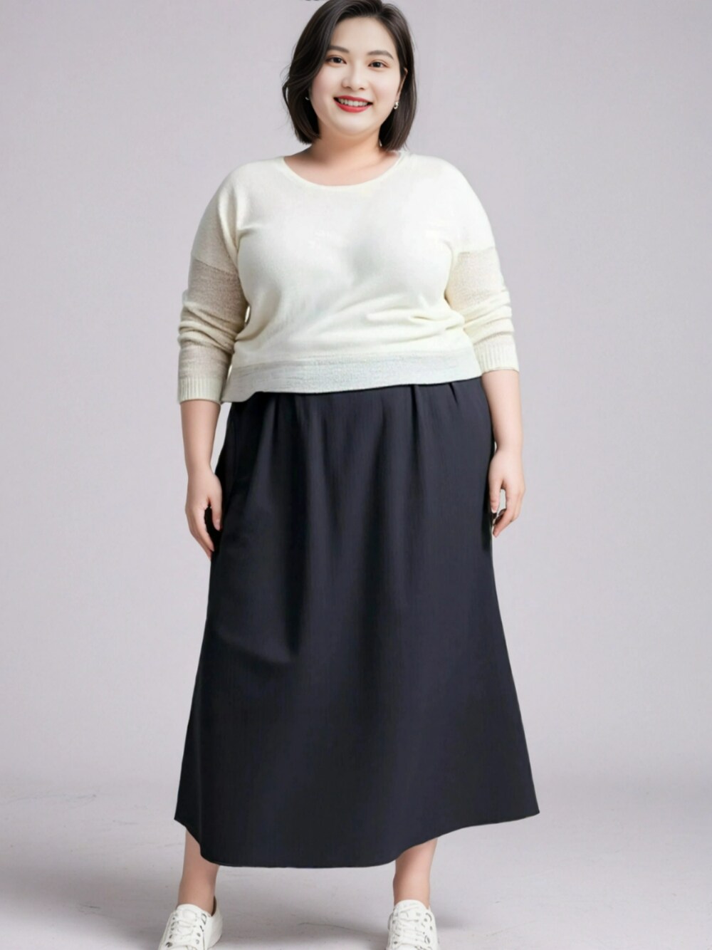 nissen AI Models(nissen本店models)のスカート「楽ちん美シルエット!ランダムテレコリブスカート<大きいサイズ有>」を使ったコーディネート