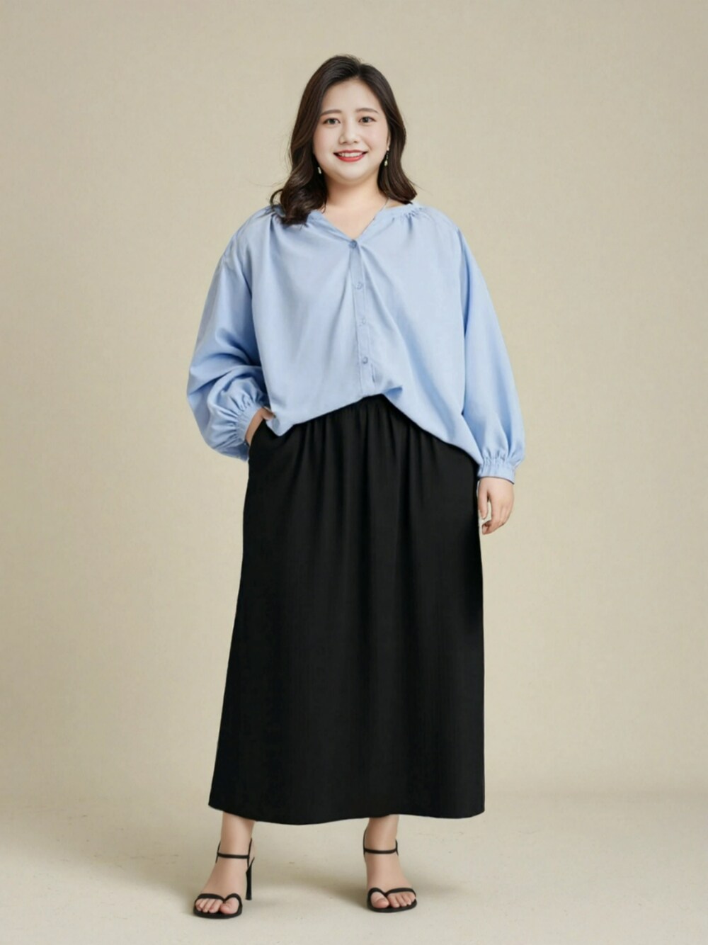 nissen AI Models(nissen本店models)のシャツ/ブラウス「マオスキッパーブラウス(UVカット・イージーケア・通気性)<大きいサイズ有>」を使ったコーディネート