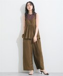 nissen AI Models(nissen本店models)のパンツ「プリーツキャミソールセットアップ(ギャザーキャミソール+セミワイドパンツ)<大きいサイズ有>」を使ったコーディネート