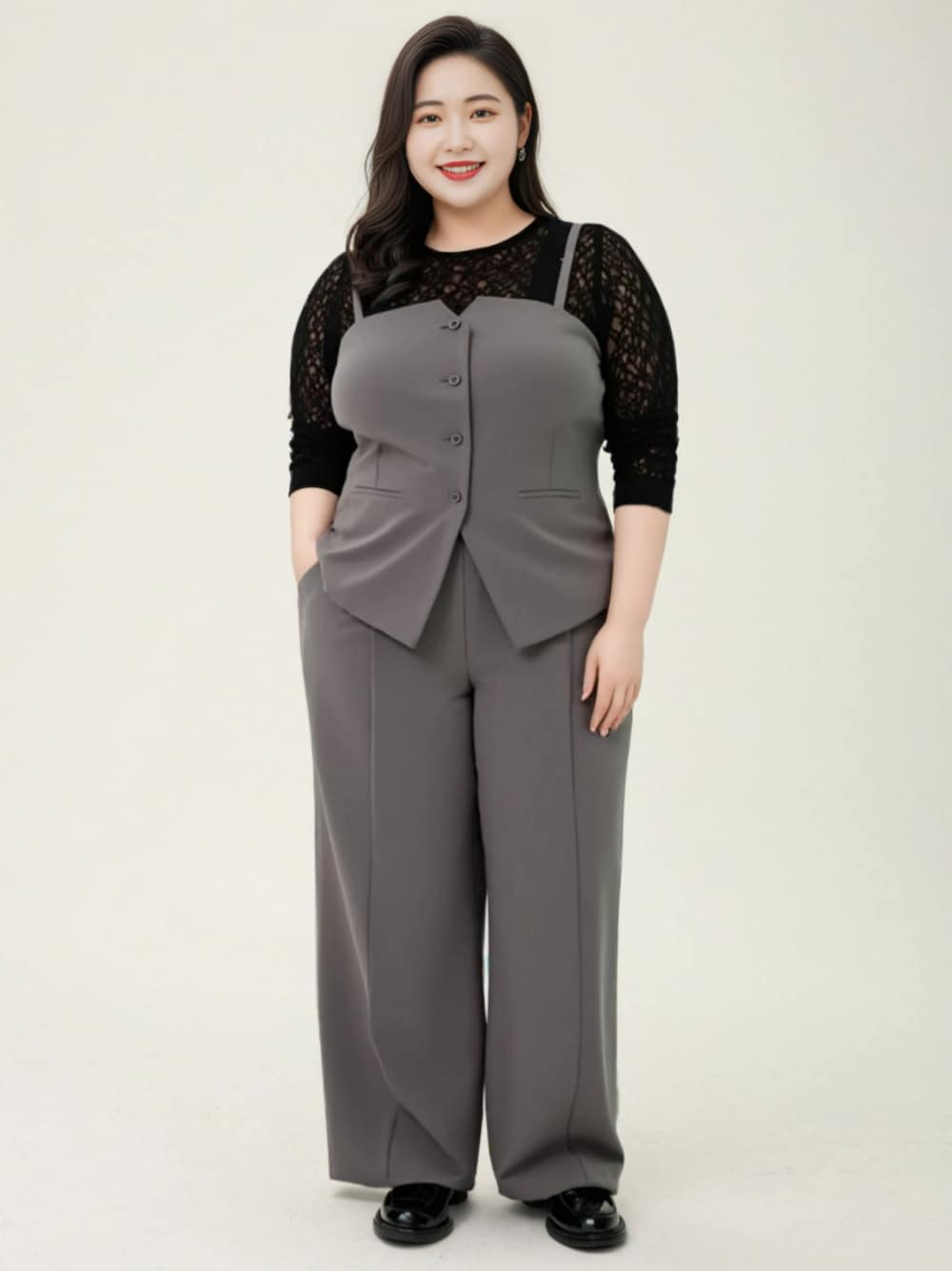 Ririka_casual_chic / リリカの軽やかオトナ服 ※AIモデルを用いた着用イメージです。ラージサイズによるスタイリング例としてご参照ください。 実際の商品とはサイズ感・仕様が異なる場合がございますので、詳細は商品ページをご確認ください。