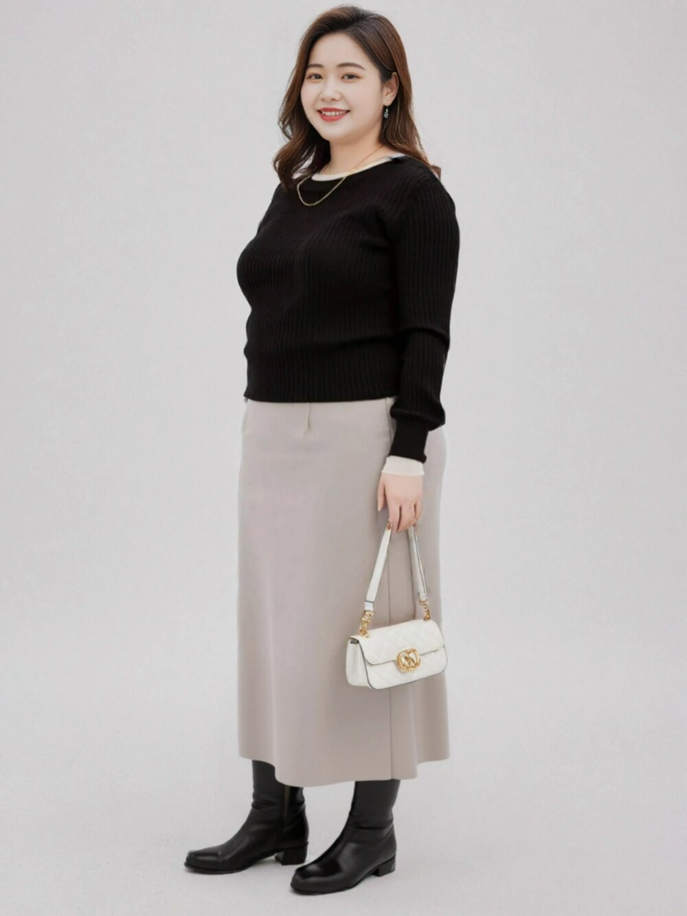 nissen AI Models(nissen本店models)のスカート「スエード調タイトスカート<大きいサイズ有>」を使ったコーディネート