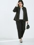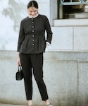 nissen AI Models(nissen本店models)のスーツセット「【入学式・卒業式】取り外せるフリル襟付カットツイードペプラムブラウス+ジャージーテーパードパンツセット<大きいサイズ有>」を使ったコーディネート