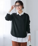 nissen AI Models(nissen本店models)のニット/セーター「洗える裾ラウンドVネックニット<大きいサイズ有>」を使ったコーディネート