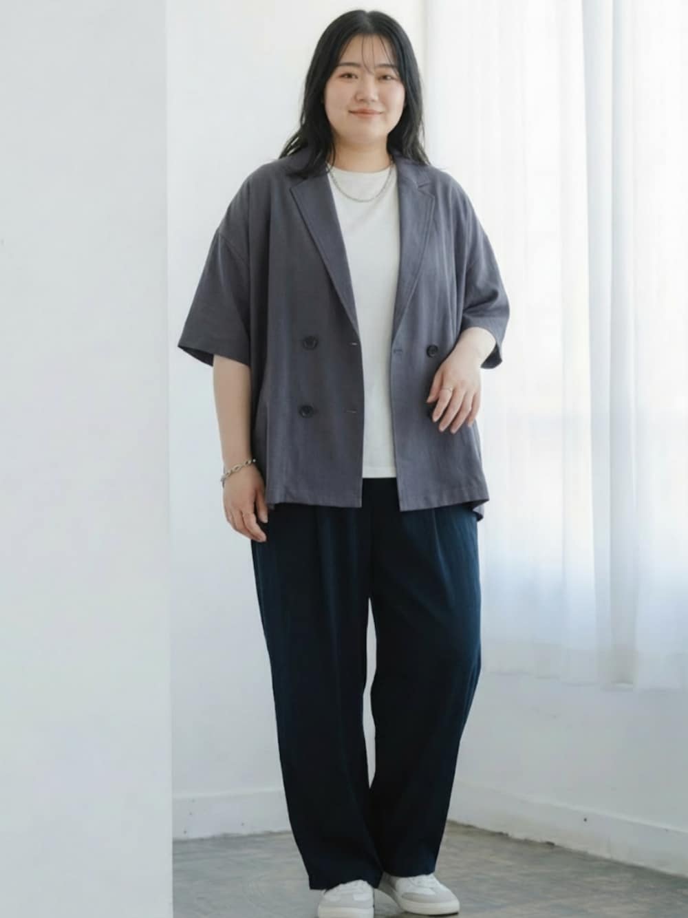 ※AIモデルを用いた着用イメージです。ラージサイズによるスタイリング例としてご参照ください。 実際の商品とはサイズ感・仕様が異なる場合がございますので、詳細は商品ページをご確認ください。