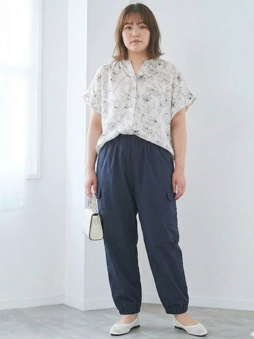 nissen AI Models(nissen本店models)のシャツ/ブラウス「<大きいサイズ>選べるプリントシアーブラウス」を使ったコーディネート