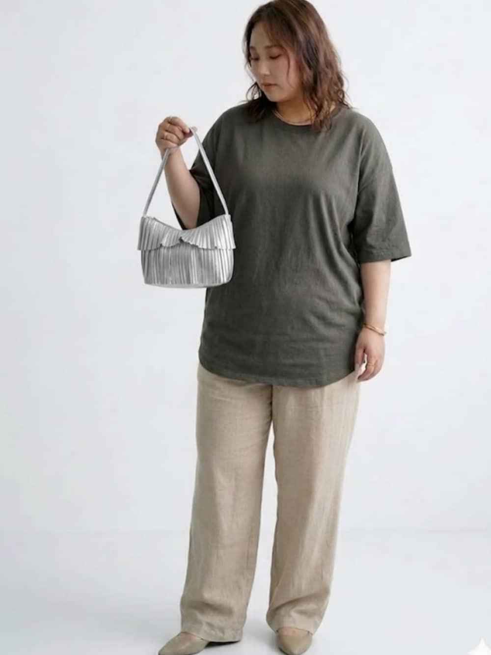 nissen AI Models(nissen本店models)のトートバッグ「polka polka(ポルカポルカ)シャイニープリーツワンハンドルバッグ」を使ったコーディネート