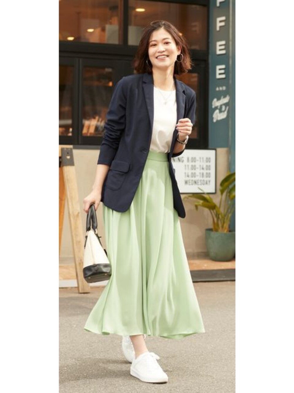 nissen Smile Models(nissen本店models)のスカート「<大きいサイズ>風なびくエアリーシフォンフレアスカート(選べるスカート丈)」を使ったコーディネート