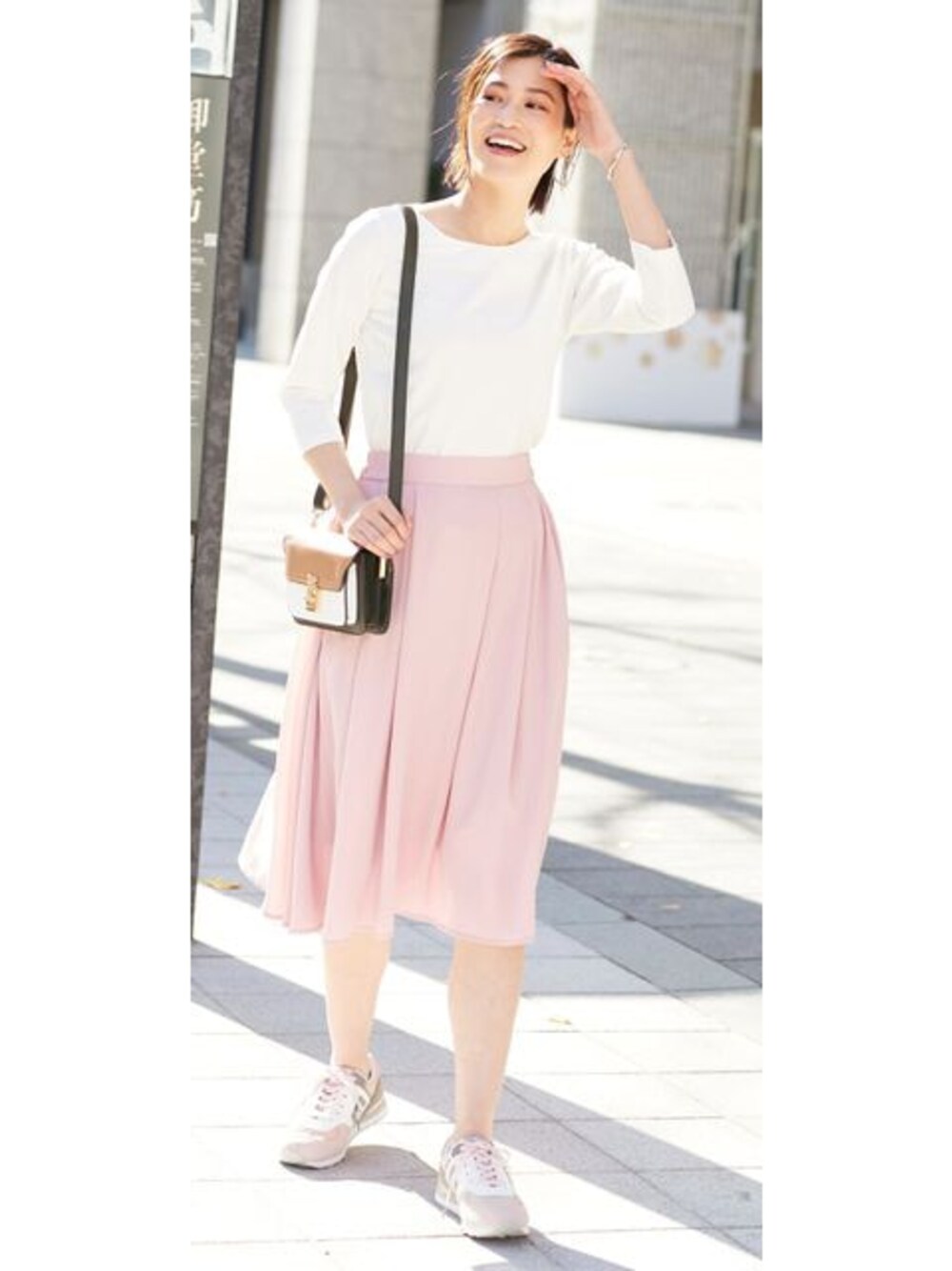 nissen Smile Models(nissen本店models)のスカート「<大きいサイズ>風なびくエアリーシフォンフレアスカート(選べるスカート丈)」を使ったコーディネート