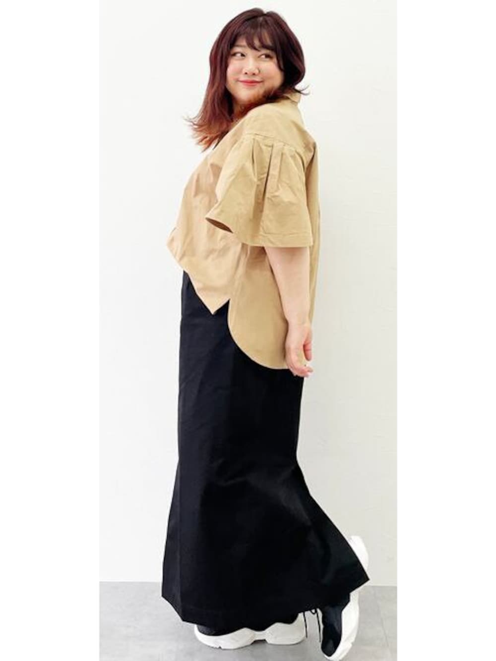 nissen Smile Models(nissen本店models)のシャツ/ブラウス「<大きいサイズ>綿100%ボリュームスリーブシャツ シックスタイル」を使ったコーディネート