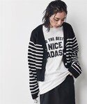 nissen Smile Models(nissen本店models)のカーディガン/ボレロ「<大きいサイズ>綿100%Vネックワイドスリーブカーディガン シックスタイル」を使ったコーディネート