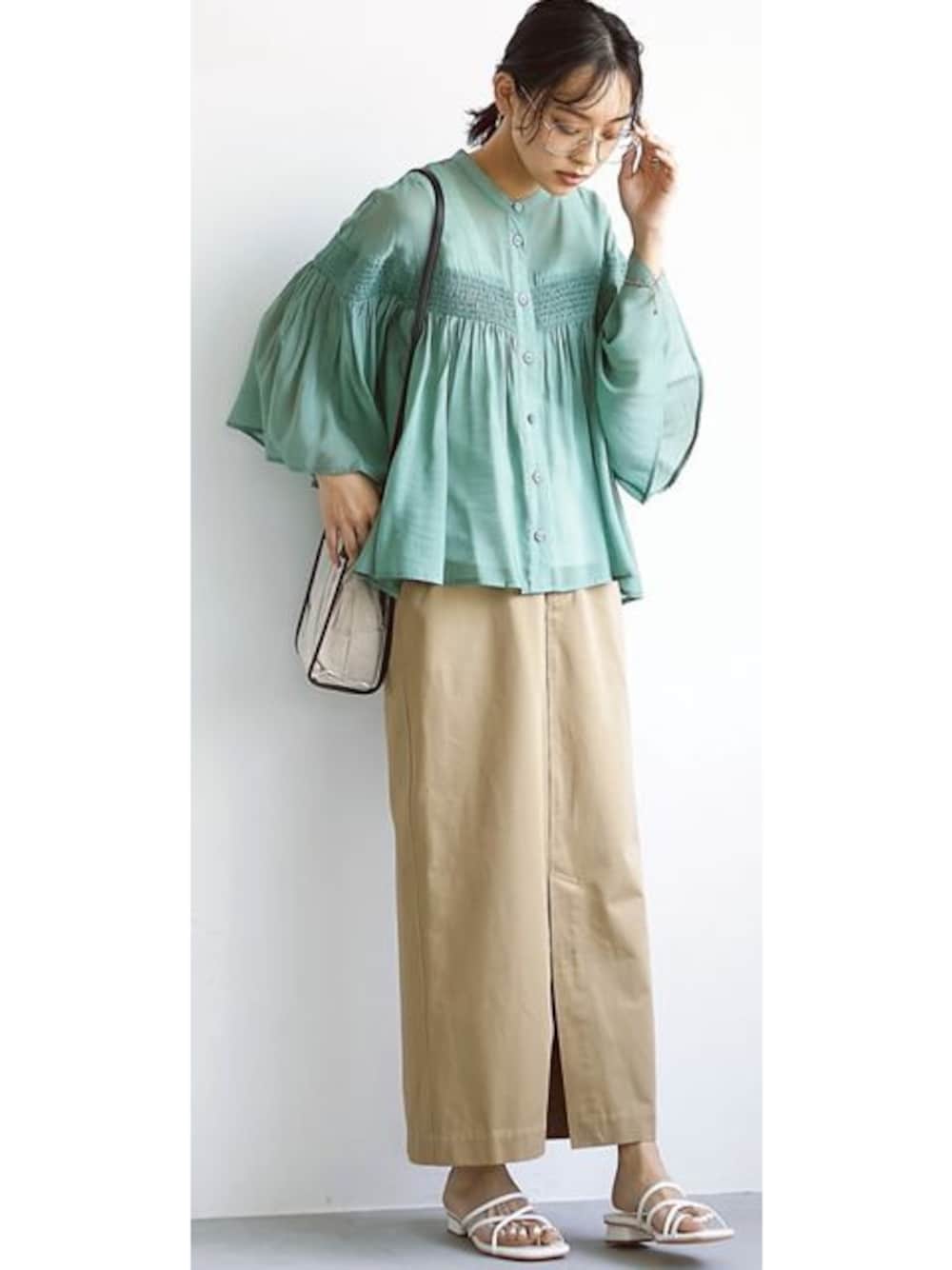 nissen Smile Models(nissen本店models)のスカート「 綿100%ロングスリットマキシタイトスカート <大きいサイズ有>シックスタイル」を使ったコーディネート