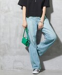 nissen Smile Models(nissen本店models)のTシャツ/カットソー「<大きいサイズ> 綿100%ムラ染ロゴプリントTシャツ GEVS.」を使ったコーディネート