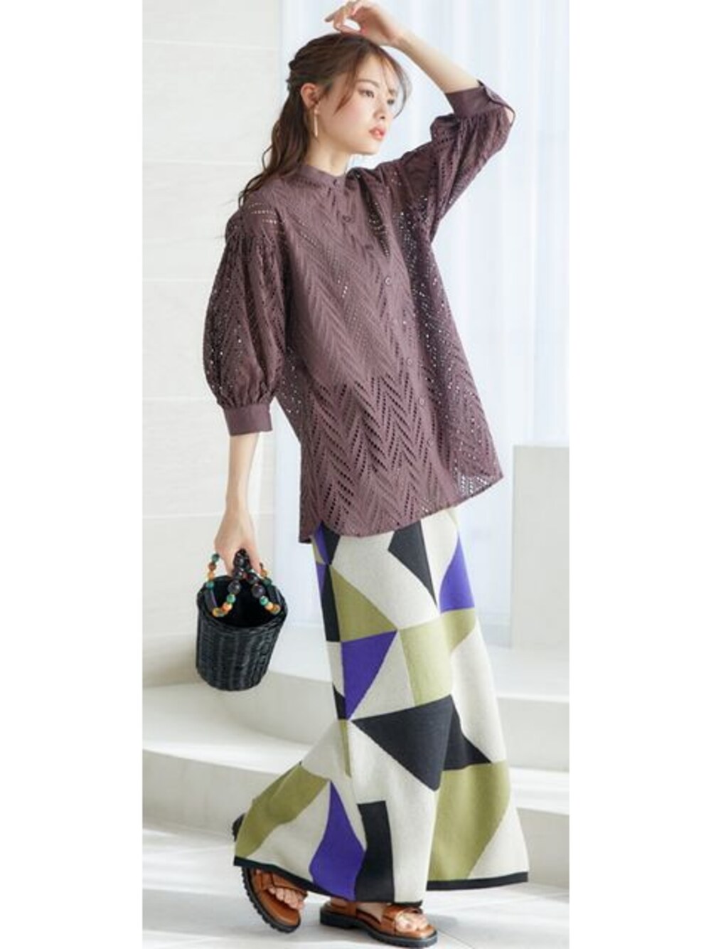 nissen Smile Models(nissen本店models)のシャツ/ブラウス「大きいサイズ カットワークレースシャツ miclat」を使ったコーディネート
