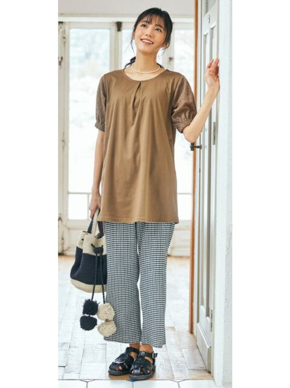 nissen Smile Models(nissen本店models)のチュニック「大きいサイズ 5分袖コットンレース切替カットソーチュニック」を使ったコーディネート