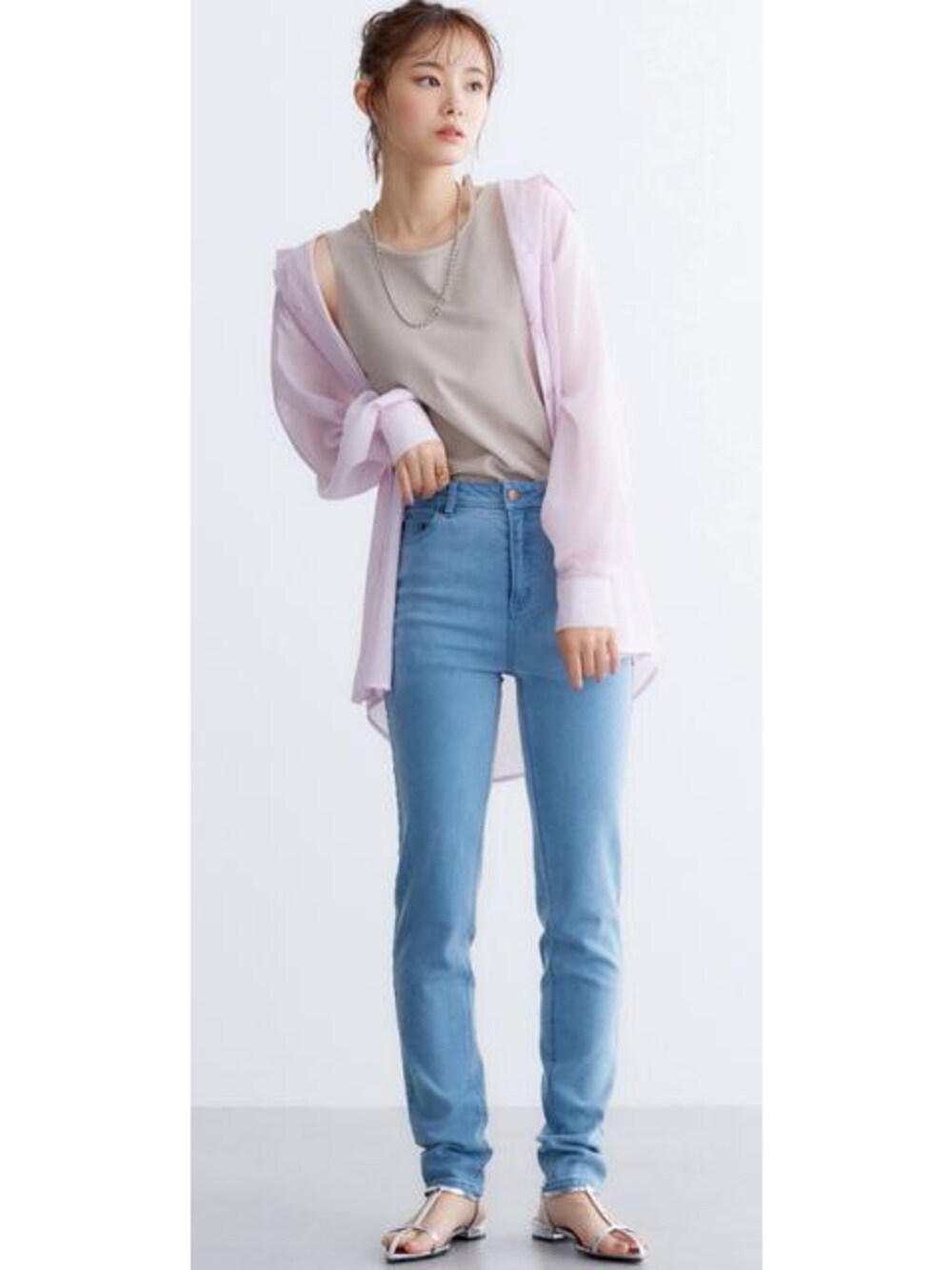 nissen Smile Models(nissen本店models)のデニムパンツ「大きいサイズ スキニーパンツ miclat」を使ったコーディネート