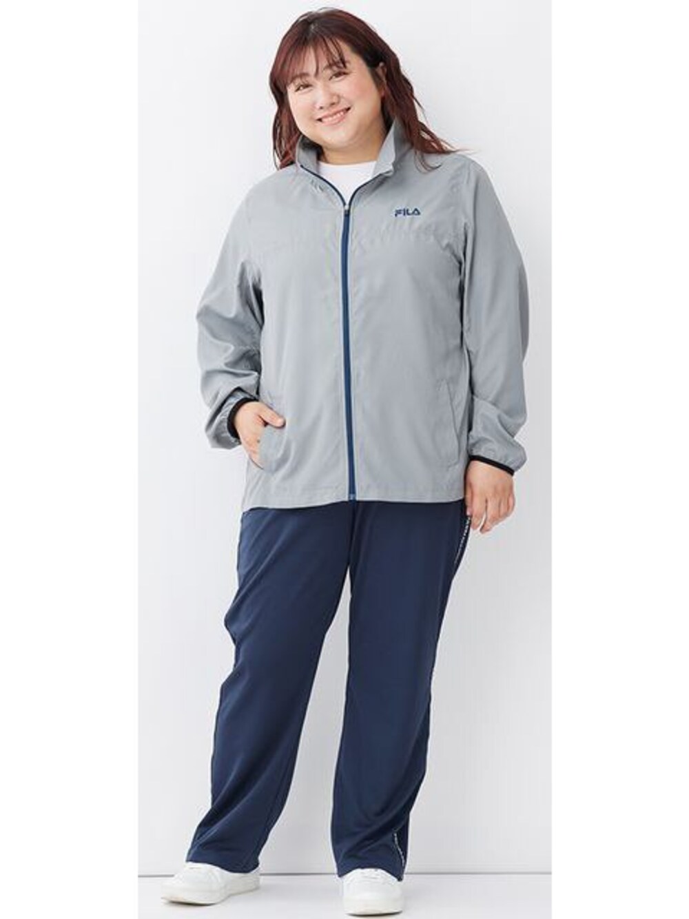 nissen Smile Models(nissen本店models)のパンツ「大きいサイズサイドラインパンツ(吸汗速乾・UVカット)/FILA」を使ったコーディネート