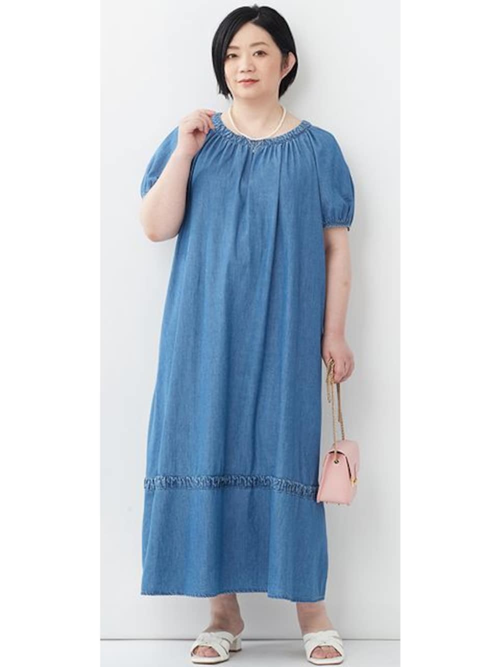 nissen Smile Models(nissen本店models)のワンピース「大きいサイズ パフスリーブデニムワンピース(OtonaSMILE)」を使ったコーディネート