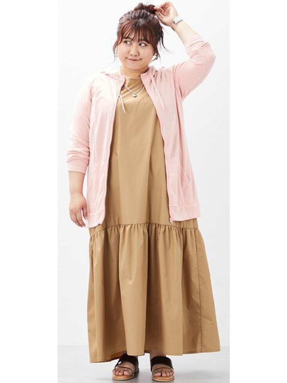 nissen Smile Models(nissen本店models)のワンピース「大きいサイズ裾切替ノースリーブワンピース(マキシ丈)」を使ったコーディネート