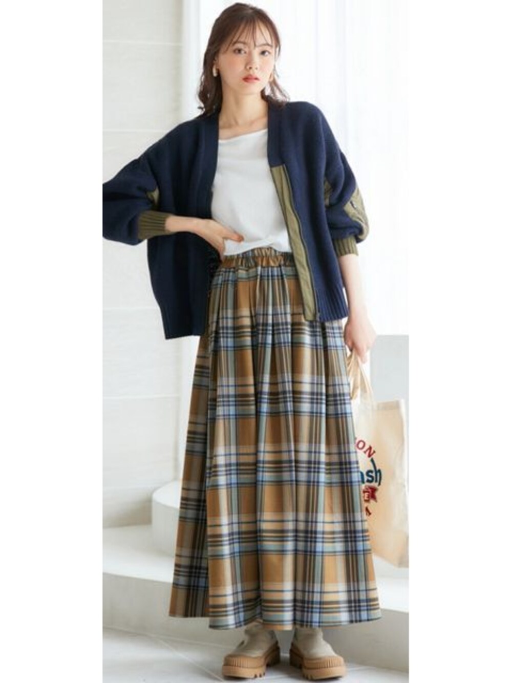 nissen Smile Models(nissen本店models)のスカート「大きいサイズ 大判チェックフレアスカート miclat」を使ったコーディネート