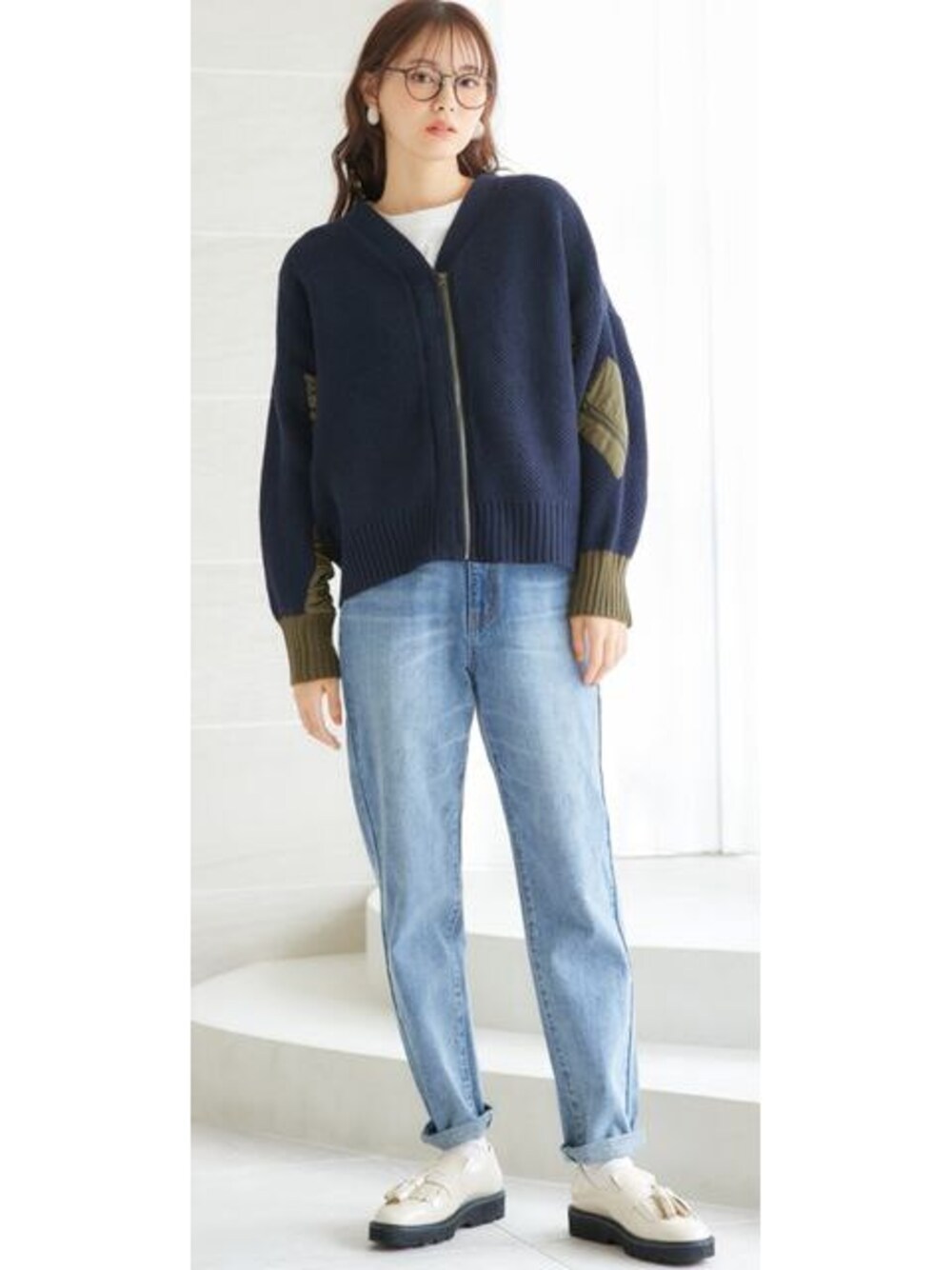nissen Smile Models(nissen本店models)のMA-1「大きいサイズ MAー1コンビニットブルゾン miclat」を使ったコーディネート