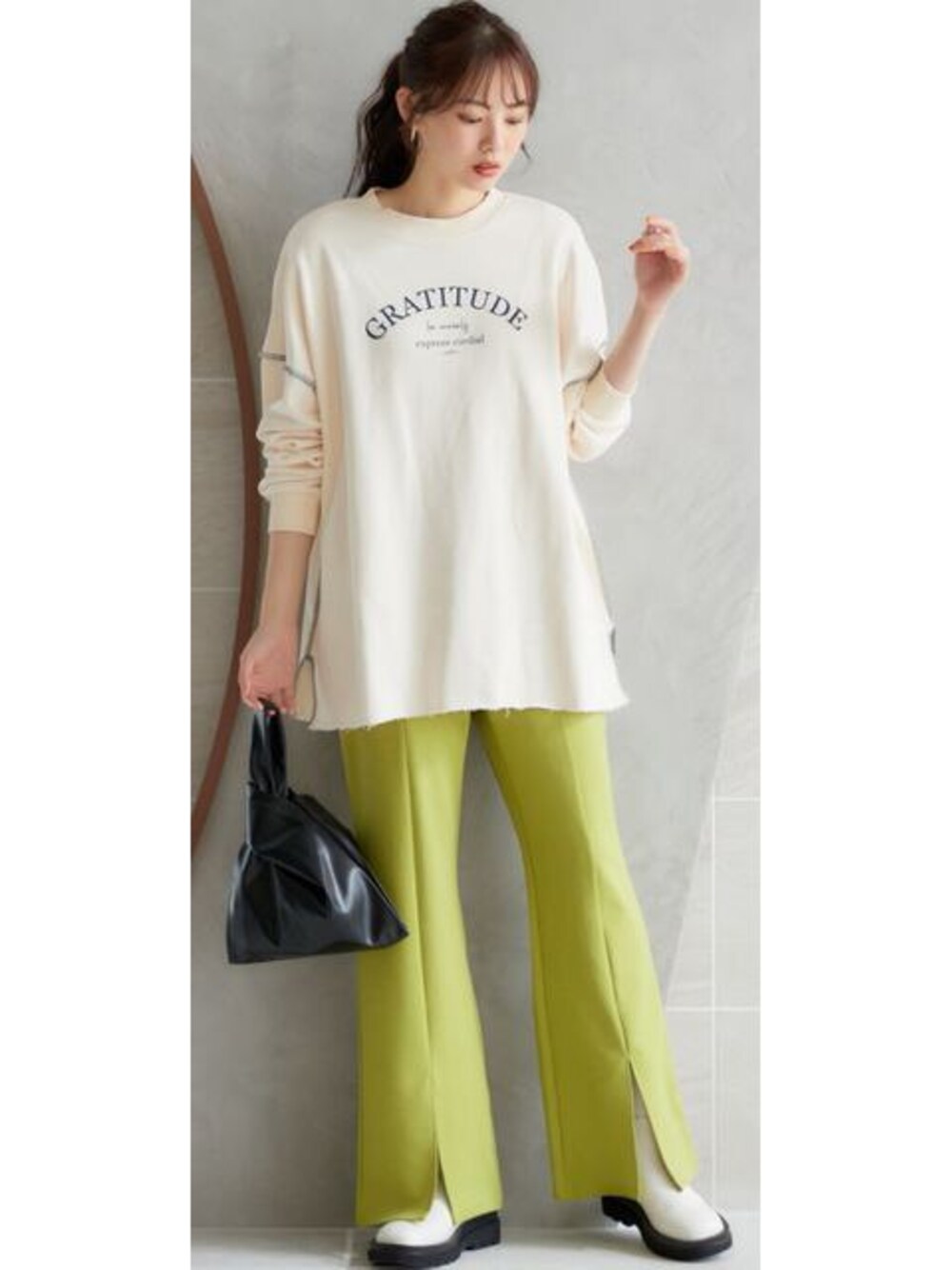 ラージサイズ商品のコーディネート例です。誘導先商品のサイズ展開がモデル着用サイズと異なる場合がございます。あらかじめご了承ください。