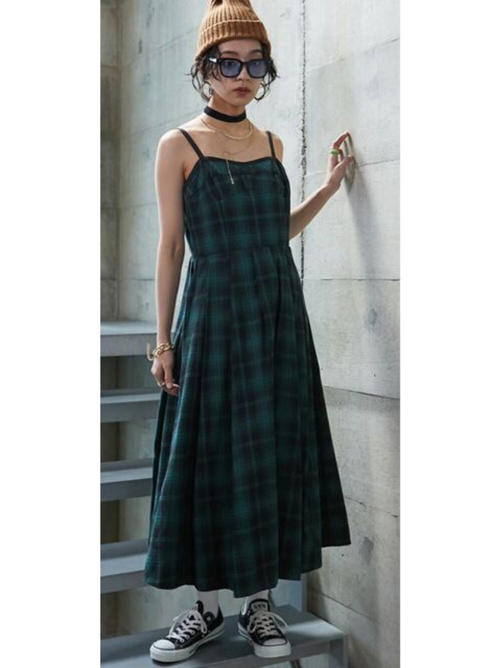 nissen Smile Models(nissen本店models)のワンピース「<大きいサイズ> チェックキャミソールワンピース GEVS.」を使ったコーディネート