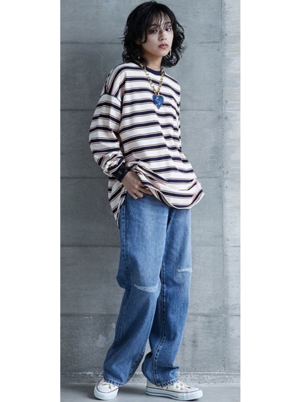 ラージサイズ商品のコーディネート例です。誘導先商品のサイズ展開がモデル着用サイズと異なる場合がございます。あらかじめご了承ください。