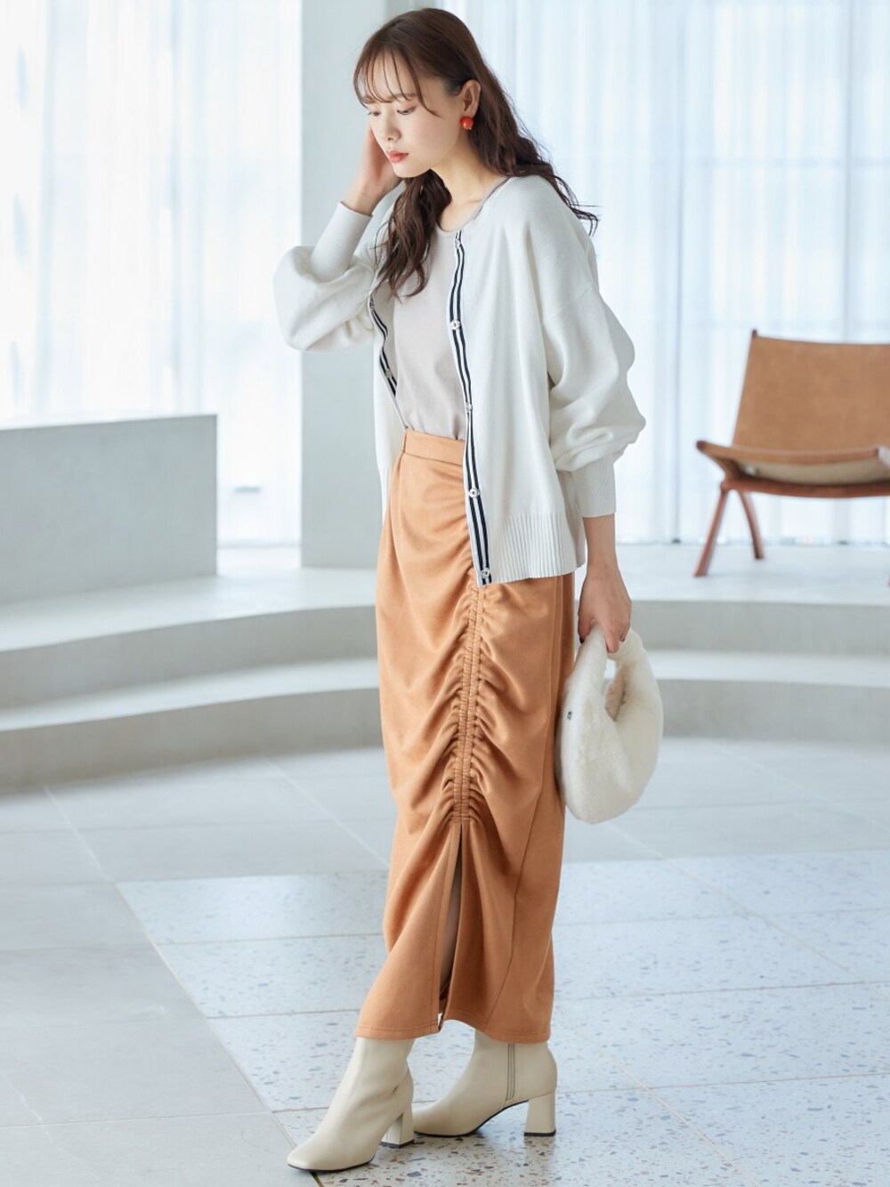 nissen Smile Models(nissen本店models)のスカート「大きいサイズ シャーリングスカート miclat」を使ったコーディネート