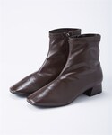 nissen Smile Models(nissen本店models)のブーツ「【ゆったり幅広】ストレッチショートブーツ(低反発中敷)(ワイズ4E)」を使ったコーディネート