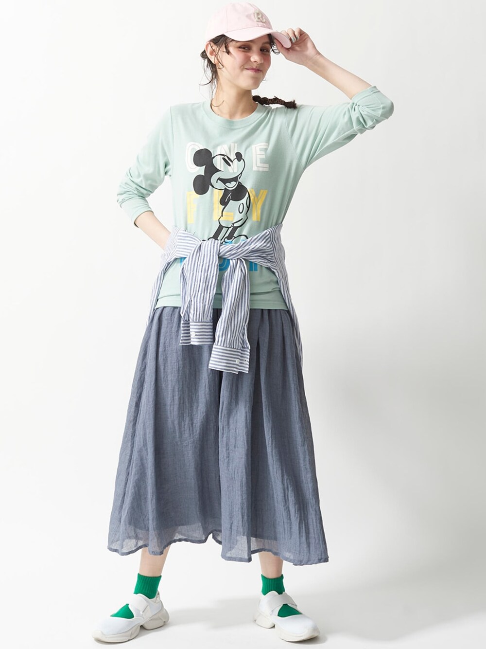 nissen Smile Models(nissen本店models)のTシャツ/カットソー「大きいサイズ長袖プリントTシャツ/ディズニー」を使ったコーディネート