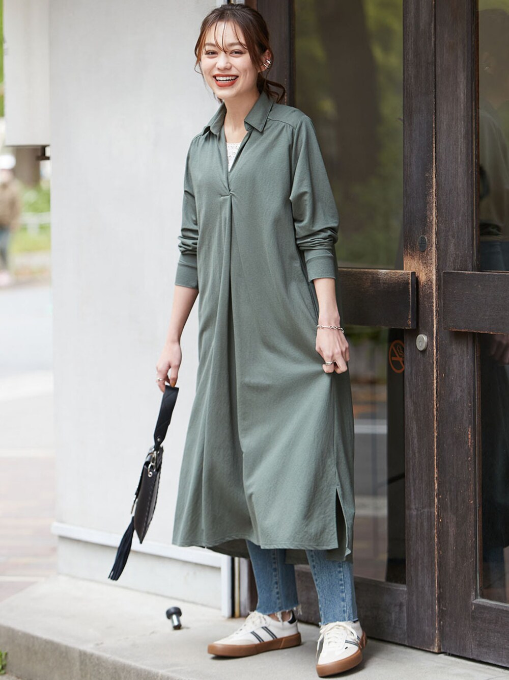 nissen Smile Models(nissen本店models)のワンピース「大きいサイズ美ラクRUタッチデザインワンピース(接触冷感・UVカット)」を使ったコーディネート