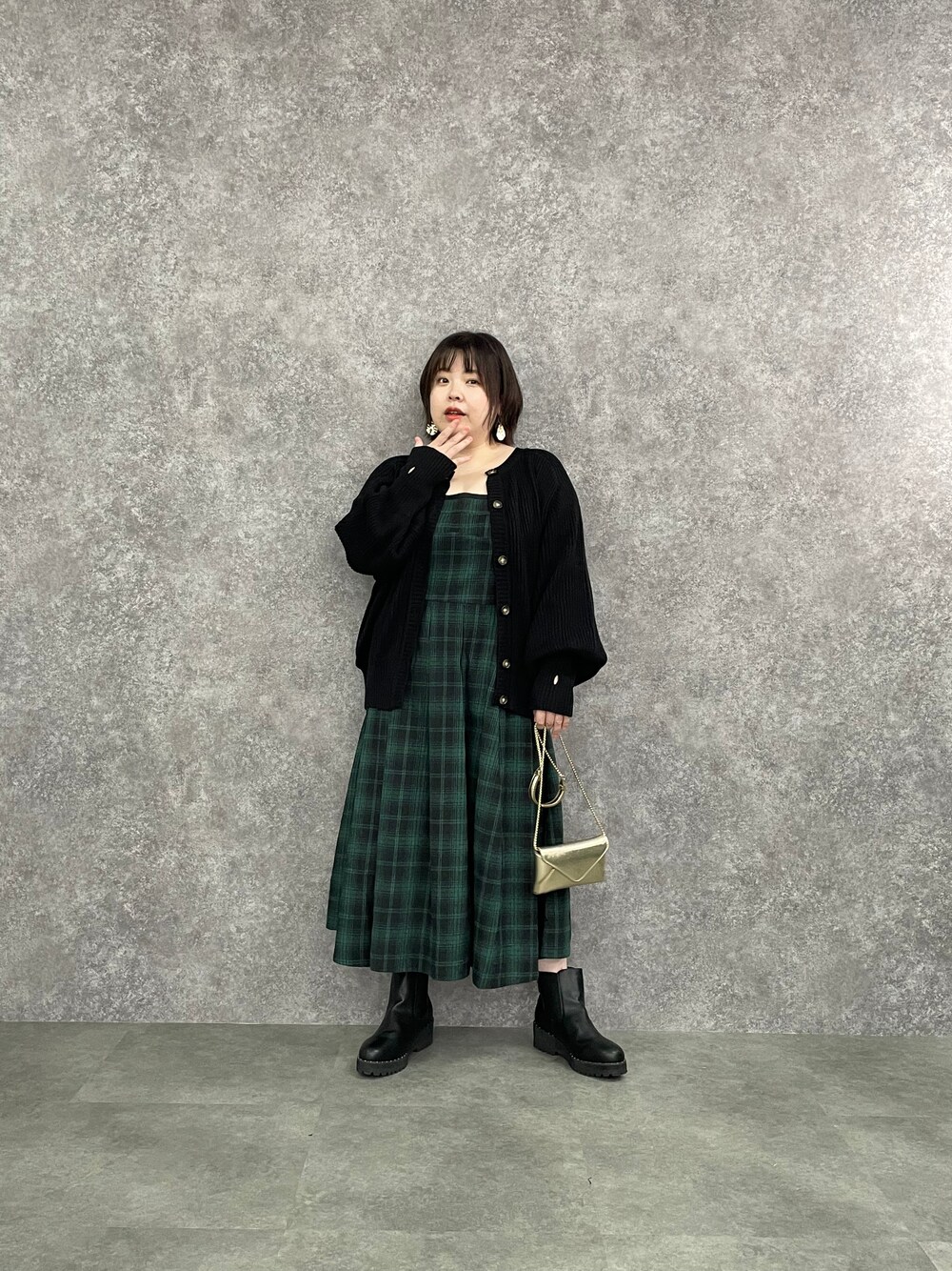 nissen Smile Models(nissen本店models)のワンピース「<大きいサイズ> チェックキャミソールワンピース GEVS.」を使ったコーディネート