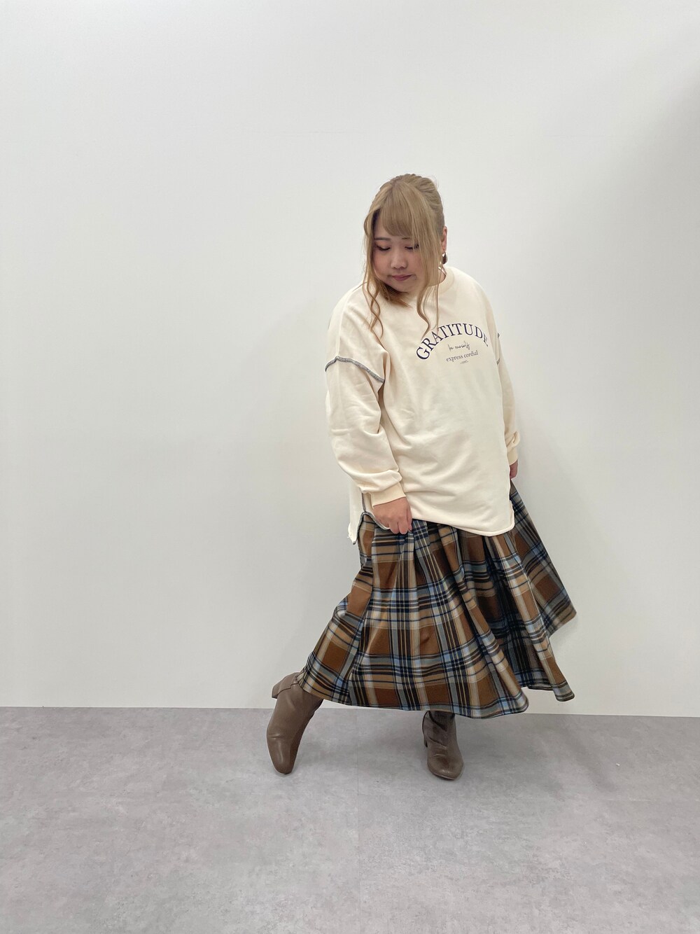 nissen Smile Models(nissen本店models)のスウェット「大きいサイズ 裏毛ロゴビッグスウェット miclat」を使ったコーディネート